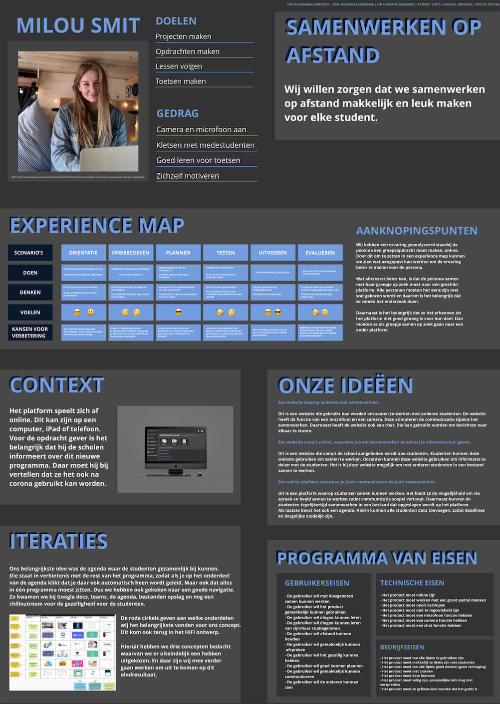In een groepje hebben we onderzoek gedaan naar een probleem dat ons als studenten belemmerd. Vervolgens zijn we gaan zoeken naar een oplossing voor dit probleem, gebaseerd op onze eigen ervaringen en de resultaten van het onderzoek. De resultaten hebben we gevisualiseerd in een poster, om deze op die manier duidelijk over te kunnen brengen.