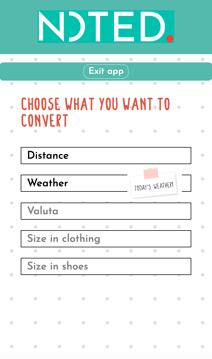 Belangrijk bij deze applicatie is dat het past op mobiel. Verder is de app Engels omdat het de internationale student moet helpen. Betreffende de stijl moet de app aansluiten op de gids (Noted).