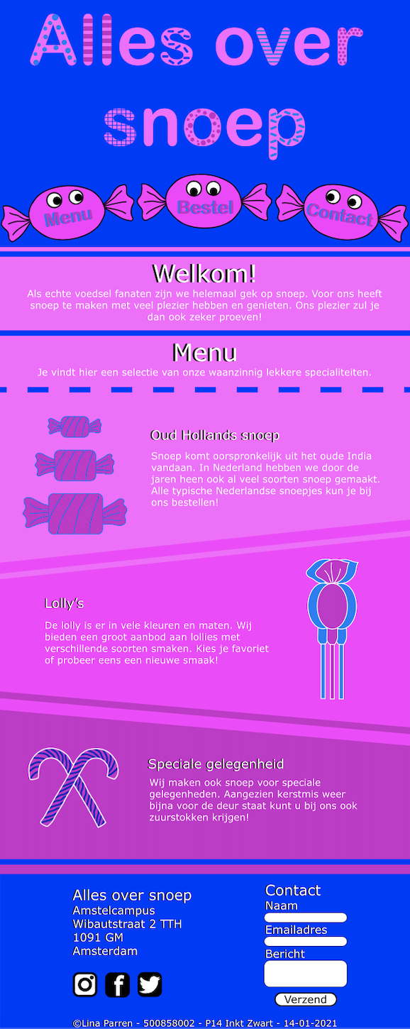 "Geef vorm aan een single page website voor je favoriete eten of drinken. Je krijgt van je docent een visuele stijl toegewezen en maakt de site voor een doelgroep naar keuze."